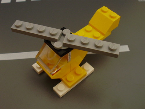 Pequeno helicóptero feito com peças de LEGO.