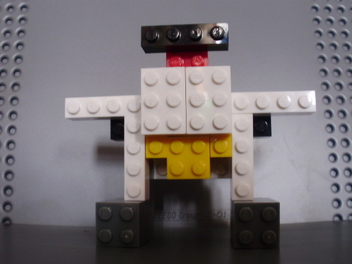 Trata-se de um pequeno robot que resultou de uma montagem mais ou menos ao acaso que acabou por tomar esta forma final.