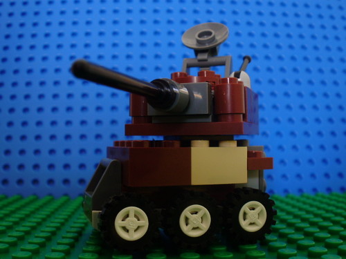 Este MOC mini carro de combate com pintura camuflada é Feito com peças LEGO do set 3844 Creationary.