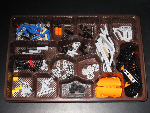 Usar os tabuleiros dos biscoitos sortidos é uma grande ajuda para separar as peças de LEGO.